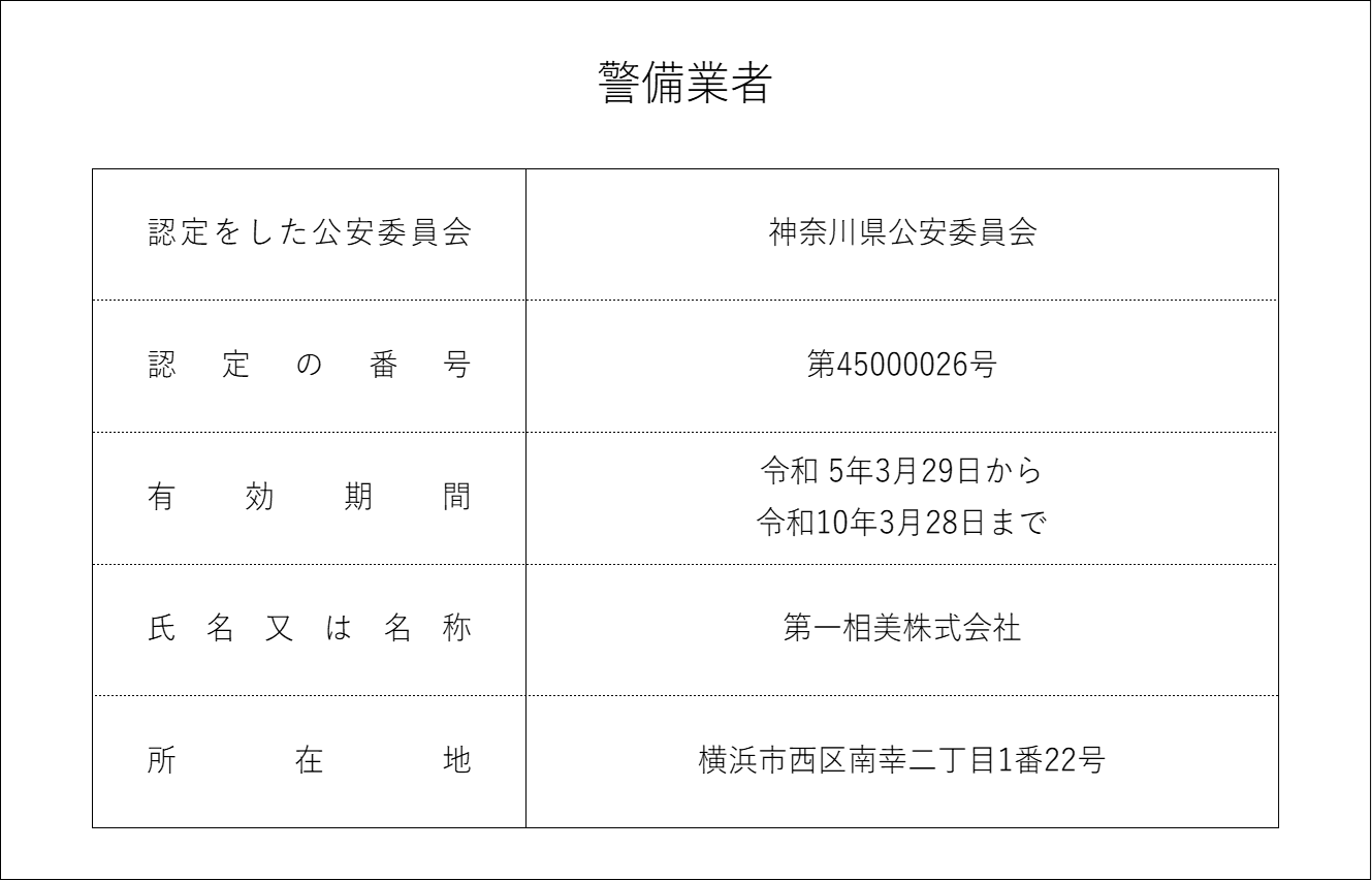 | 昭和58年 3月 | 警備業法に基づく認定取得 |